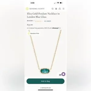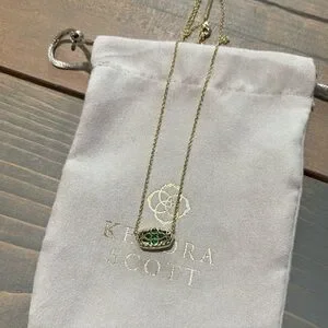 Beautiful Kendra Scott necklace! The color is a little more blue-tinted in person. I wore this necklace but replaced the chain and kept the stone. The stone is worn but the chain is brand new I never wore it. Great quality and so timeless!