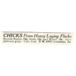 B.W. Amey Chicks Cocolamus PA 1924 Ad AG3-S9