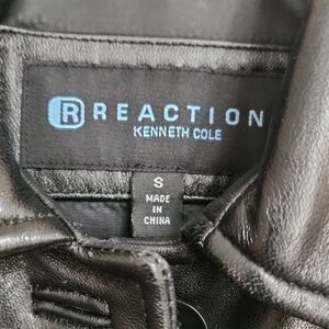 Kenneth Cole Black Leather Jacket with Classic Tailored Look and Matching Belt S