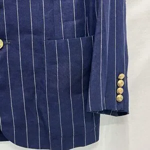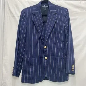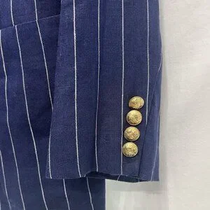 *SOLD*Ralph Lauren Blue Pinstriped Linen Women 2 Piece Suit USA Blue Label VTG