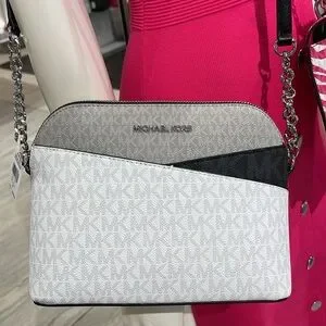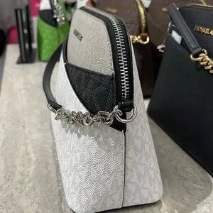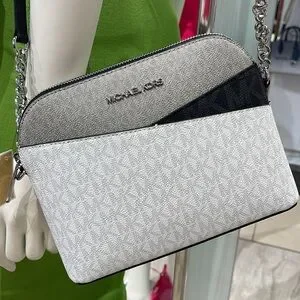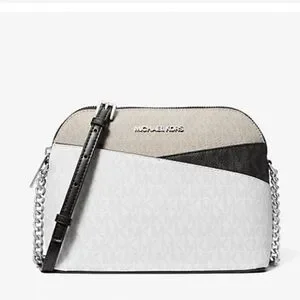 Michael Kors Jet Set Travel Color-Block Signature Logo Crossbody Bag Optic White