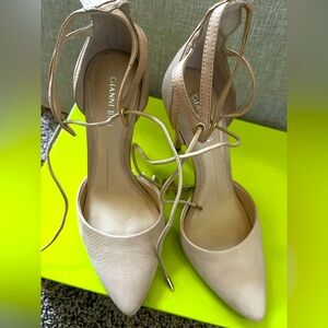 Gianni Bini Women's Cream Lace-Up Heels Good Condition