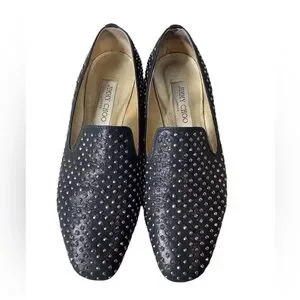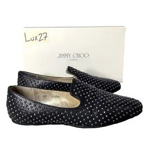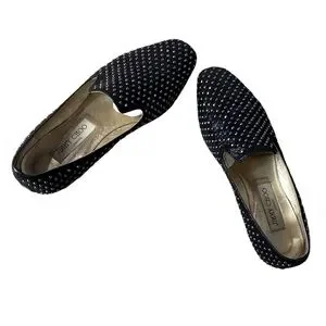 JIMMY CHOO Women’s Wheel Studded Suede Smoking Slipper Shoes Size 8.5