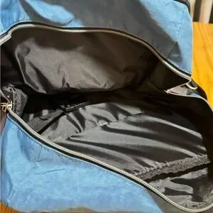 This garment bag features a sleek rectangular design in a stylish blue and gray color scheme. Made from lightweight fabric, it is perfect for keeping your clothes organized during travel. The zipper closure ensures your items stay secure while on the go.