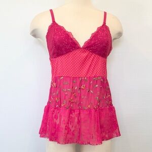 Y2K Victoria’s Secret Nylon Hot Pink 2006 Polka Dot Mesh Lace Babydoll Camisole