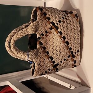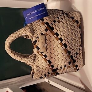 NWT Parker & Hyde Bone/Camel Woven Mini Tote with matching coin wristlet