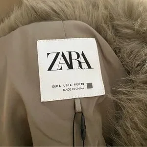 Zara faux fur short coat in grey brown color!! Round buckle closure at the front with large collar!! New with tags!! Viral coat as seen on many bloggers and no longer available on the site!!