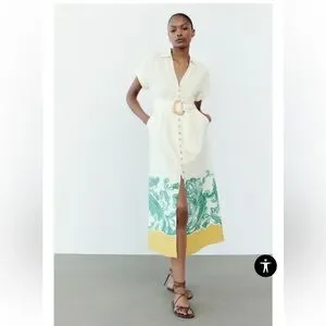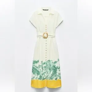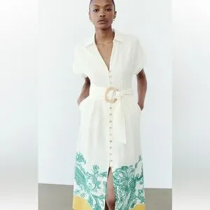 Zara GRECIAN PRINT SHIRT DRESS Size XS NWT