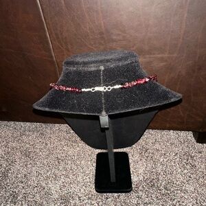 Hand Crafted “One of a Kind” by Unique Earth It is 100% read garnet beads. It has hand made sterling Karen hill Thai Beads and hand made Sterling Silver clasp by Native. Americans. It is approximately 16.5” in length. This elegant red beaded necklace adds a touch of sophistication to any outfit. Perfect for any occasion.