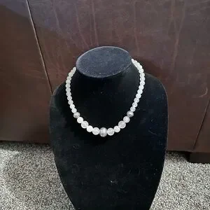 This elegant Rose Quartz beaded necklace adds a touch of sophistication to any outfit. This is a “One of a Kind” Hand Crafted Necklace by Unique Earth. It has Native American Hand Made Sterling Silver Beads & Clasp. The beads are Flowers. It is approximately 17.5” in length.