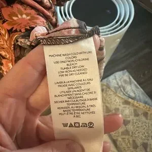 Worn once. Dry clean only. Elegant women's dress featuring a vibrant floral pattern in black and orange. Perfect for any occasion. SMOKE FREE/PET FREE/FRAGRANCE FREE HOME.