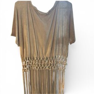 Stylish top with macrame fringe. Dress up or down as bathing suit coverup. SMOKE FREE/PET FREE/FRAGRANCE FREE HOME.