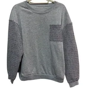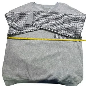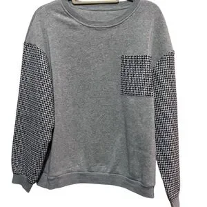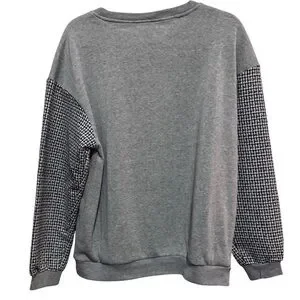 SHEIN- Houndstooth print drop Shoulder Sweatshirt - black / grey - size M