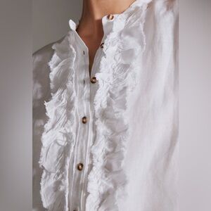 Anthropologie Pilcro White Ruffle Placket Buttondown Shirt Small NWT