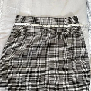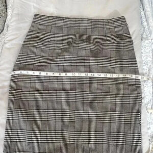 WORTHINGTON plaid print black and white plaid print skirt. Kick back split. Back zipper closure. Lined . Polyester rayon cotton stretch machine washable excellent condition measurements in pics
