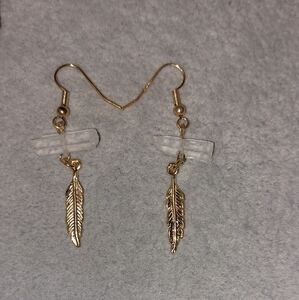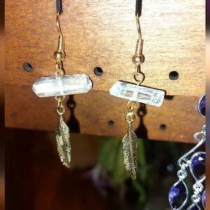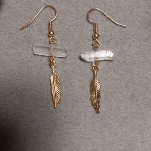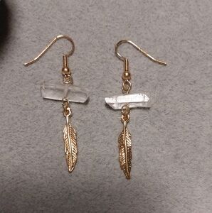 Clear Quartz Crystal Feather Earrings