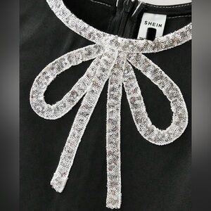 SHEIN Little Girl’s Black Silver Sequin Bow Neck Dress Size 6yr old