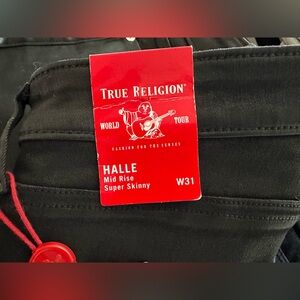 True Religion Halle Mid Rise Super Skinny in Coated Black NWT
