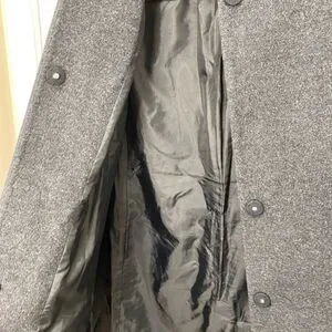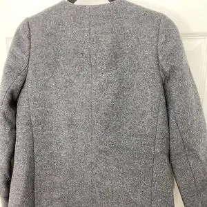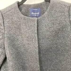 Madewell grey button front peacoat. Long sleeve, lined, snap buttons in front. Two missing buttons not seen when closed. Two small stains otherwise in good condition. Great for winter or fall. Sleeve 22in, pit to pit 16.5in, length 34.5in, size x small. 🚪