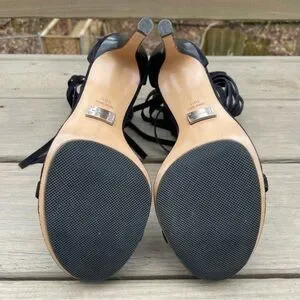 Michael Kors Daphne Black Fringe Platform Open Toe Stiletto Sandals Shoes 39.5