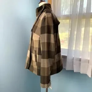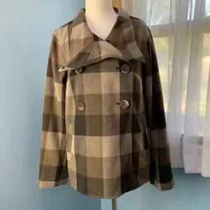 NWT Liz Claiborne Brown Combo Plaid Peacoat Size Medium