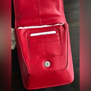This vintage genuine leather crossbody is made by iLi New York Toronto. This leather is so soft and smooth! Magnetic closure. Three card slots under the flap. Inside zipper pocket. Outside pocket. Adjustable strap. Measures approximately 9.5” high, 7.5” wide x 2” wide. Smoke free home.