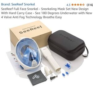 SeeReef Full Face Snorkel - Snorkeling Mask Set With Hard Carry Case - See 180 Degrees Underwater with 4 Valve Anti Fog Technology Breathe Easy