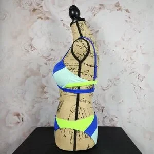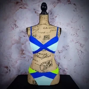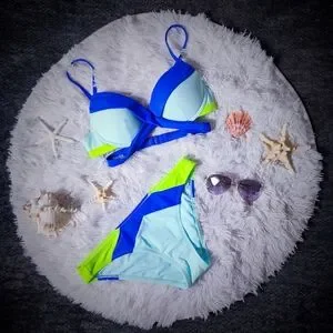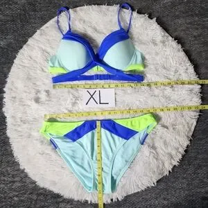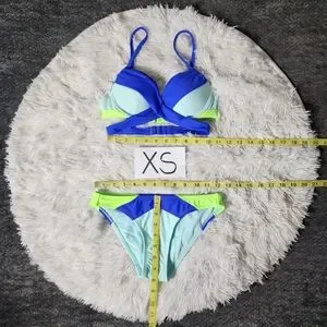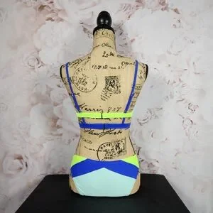 Green and Blue Colorblock Push-Up Cheeky Bikini Set