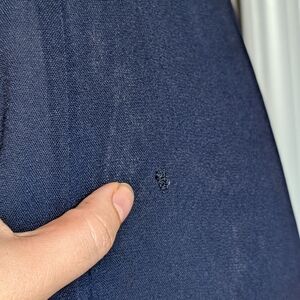 Vintage 1930s/40s light weight navy blue dress with cream lace accents. In good vintage condition; easy to fix pop in the skirt seam, small tear in front lace, some discoloration in lace, some wear to belt. Slightly sheer crepe fabric with some shine to it (shows up in photos, note that is not discoloration). Plenty of fabric to lengthen skirt, very wearable.