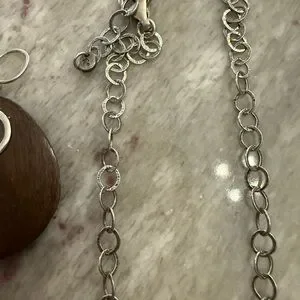 This striking necklace features a circular pendant with a golden design attached to a black cord, complemented by a silver-toned chain. The color palette of black and gold adds a touch of elegance, making it a perfect accessory for any occasion. Basically NEW!