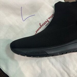 Salvatore Ferragamo special edition elegant black sock sneakers embellished with Swarovski Crystals. Perfect for any occasion, these shoes offer both comfort and sophistication. I’m usually a EUR size 39 and fit me well because it’s like socks.
