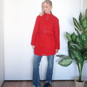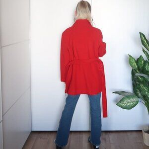Amazing Michael Kors 100% wool coat. Zipper and snap fastener closure. Matching belt. Warm, soft, and cozy. Three functional pockets (one on the chest). Fully lined. Stand collar will protect your neck from the autumn / winter wind, and the bright red color will lift your mood.