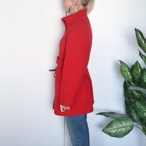 Michael Kors 100% Wool Red Coat With Stand-collar & Belt