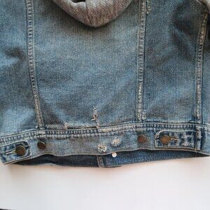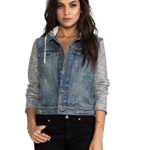 This jacket from the bohemian brand Free People is perfect for fall with its trendy "Indie Wash" blue denim body and cozy heather grey knit sleeves. There's an option to remove the hoodie by unbuttoning it and revealing the denim collar.