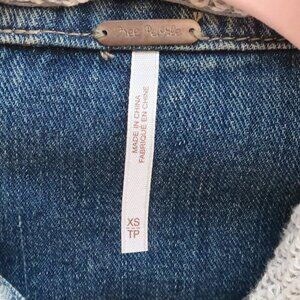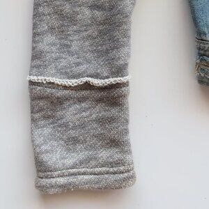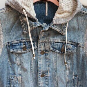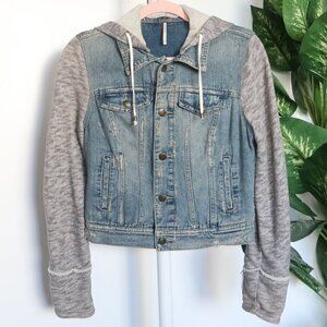 Free People Blue Denim Jean Heather Gray Knit Long Sleeve Hooded Jacket Size XS