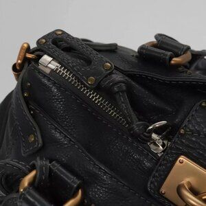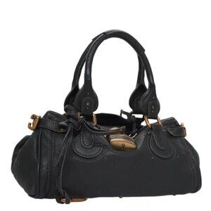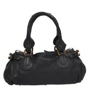 Chloe Paddington Hand Bag Leather Navy Gold Silver Auth