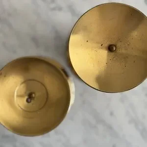 Add a touch of vintage charm to your space with this stunning set of brass candle holders, made in England.
