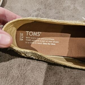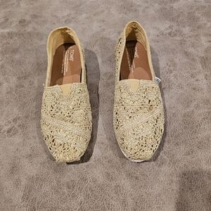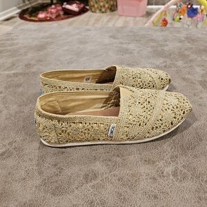 Toms Metallic Gold Crochet Shoes. Women's size 7.5. Preowned in good condition.