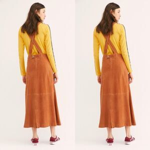 Retro-inspired luxe suede jumper featured in a midi skirt silhouette.