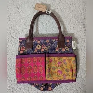 This vibrant rainbow tote bag is perfect for adding a pop of color for your makeup or crafts. Featuring a mix of purple, pink, blue, and yellow hues, it's both stylish and functional. Ideal for everyday use.