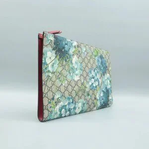 100% Authentic GUCCI Blooms Blue Canvas Clutch Bag 552-060724
