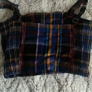 Hollister Crop Top Size Small Multicolor Plaid Adjustable Strap Festival Smocked