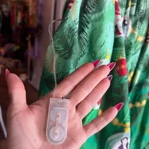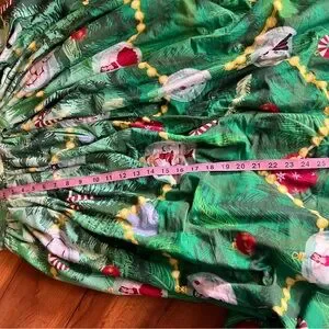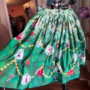 This stunning light up skirt still functions on the front and the wiring still exists. If you have any time to go to an electronic store, you could easily get someone to fix the other side, but for photos, the front still lights up, and the skirt itself is gorgeous, featuring pinup, girls, and little ornaments