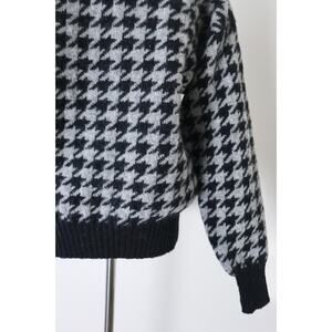 Vintage 1980s CREW Shetland Wool Houndstooth Sweater Pullover Black Gray