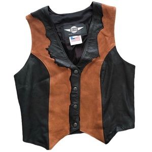 Vintage Made in USA Trim Leathers Black and Brown Biker Vest Blush Size Small