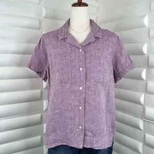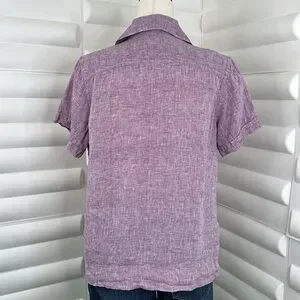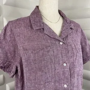 L.L. Bean Purple Linen Short Sleeve Button Down Shirt