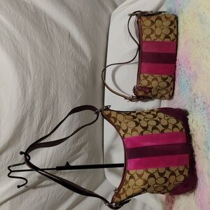 Authentic Coach Vintage Y2K Demi Stripe Shoulder bag . Both have zipper closures, zipper pocket inside! Silver hardware! Both need some suede cleaning but otherwise they are both beautiful vintage bags!