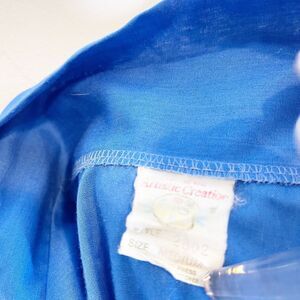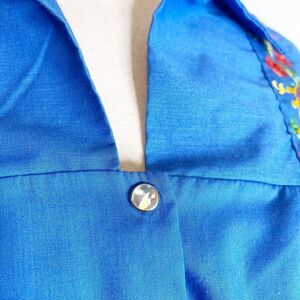 Vintage 70s 80s Artistic Creation Size Medium House Dress Blue Floral Embroidery