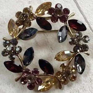 Flower and Leaf Rhinestone Brooch - Round Garland Autumn Colours