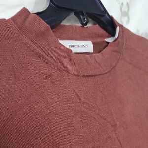 This Papermoon top features a warm brown color and a relaxed boxy fit, perfect for everyday wear. The 3/4 sleeves and mandarin collar add a touch of style, making it a versatile piece for any casual occasion. length 30 in, p2p 24 in